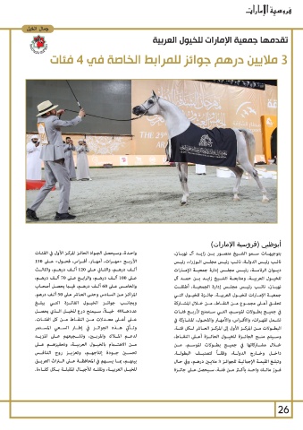 وبجانــب جوائــز الخيــول الفائــزة التــي يبلــغ نهيــان ،نائــب رئيــس مجلــس إدارة الجمعيــة ،أطلقــت