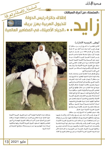 وشـكلت هـذه الجائـزة الرفيعـة أكـر دعـم للخيـول العربيـة الأصيلـة أبوظبي (فروسية الإمارات)
