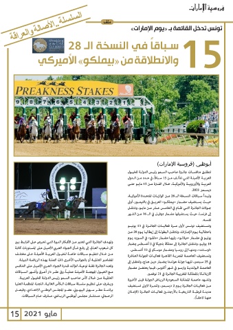 المضامـر العالميـة أو بالجوانـب الأخـرى ذات الصلـة بهـذه الرياضـة النبيلـة. العربيـة والأوروبيـة والأميركيـة ،خـال الفـرة مـن 15مايـو حتـى