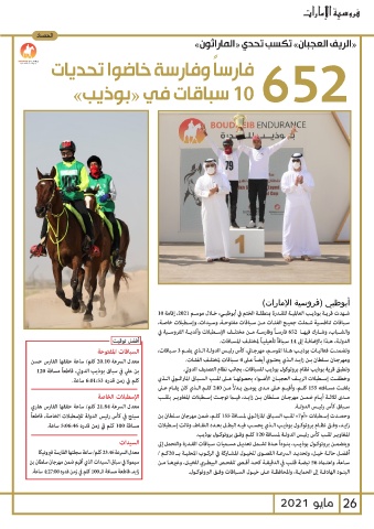 السباقات المفتوحة شـهدت قريـة بوذيـب العالميـة للقـدرة بمنطقـة الختم في أبوظبـي ،خـال موسـم ،2021إقامة 10