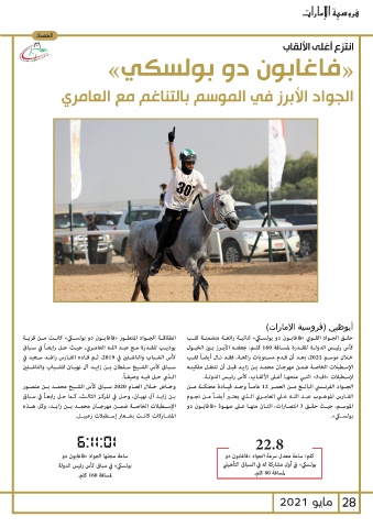 ســباق كأس الشــيخ ســلطان بــن زايــد آل نهيــان للشــباب والناشــئين كأس رئيـس الدولـة للقـدرة لمسـافة 160كلـم ،جعلتـه الأبـرز بـن الخيـول