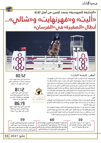 لقب نهائي عمر 6سنوات. وفي نهـائي الخيـول عمـر 6سـنوات ،نجـح الفارس سـالم أحمـد السـويدي في قيادة فرسـه «فهرنهايت