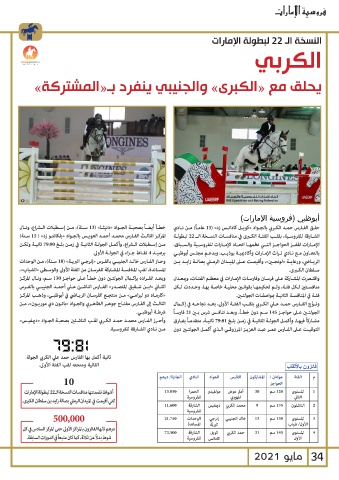 «كارمـاه دو ليزامـي» مـن منتجـع الفرسـان الريـاضي في أبوظبـي ،وذهـب المركـز واقتـرت المشـاركة عـى فرسـان وفارسـات الإمـارات في معظـم الفئـات ،وبمعـدل