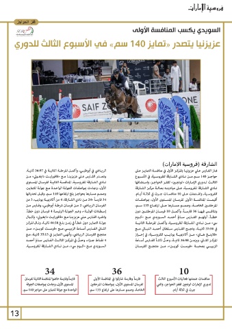 الأول ،وجـاءت بمواصفـات الجولـة الواحـدة مـع جولـة للتمايـز، حواجــز 140ســم مــن نــادي الشــارقة للفروســية ،في الأســبوع