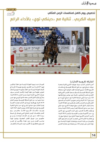 للفروسـية ،في إحـراز المركز الثالث ،وبزمـن التمايز 33:67ثانية. الأول والفرسـان الشـباب ،وأكمـل المرحلتـن دون خطـأ 38فارسـاً.