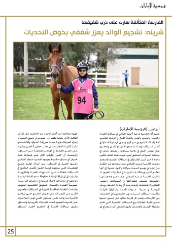 خصوصــاً القــدرة والتحمــل ،لتحقيــق التنافســية العالميــة. وأثنــت الفارســة شرينــه الفــاسي عــى دعــم والدهــا لهــا