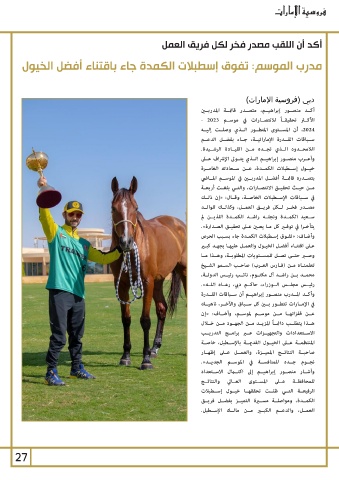 مدرب الموسم :تفوق إسطبلات الكمدة جاء باقتناء أفضل الخيول