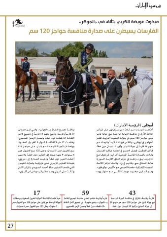 سـم للخيـول عمـر 5سـنوات ،وعـى 125سـم للخيـول عمـر الحواجـز في أبوظبـي ،وتنافـس فيهـا 43فارسـاً وفارسـة ،عـر