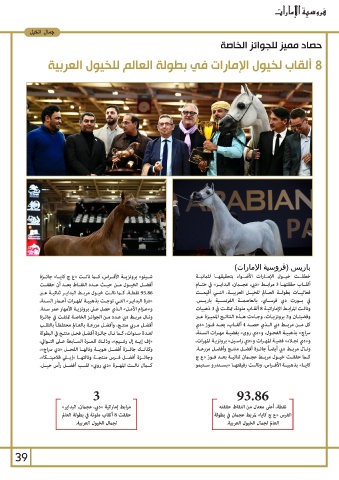 شــيلو» برونزيــة الأفــراس ،كــا نالــت «ع ج كايــا» جائــزة باريس (فروسية الإمارات)