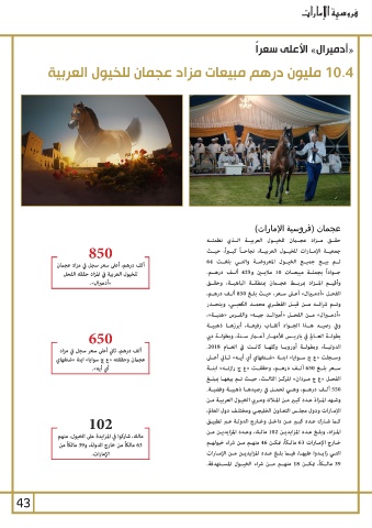 ألف درهم ،أعلى سعر سجل في مزاد عجمان حقــق مــزاد عجــان للخيــول العربيــة الــذي نظمتــه