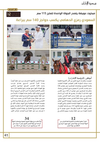 الزبيبـي المركـز الأول ،وأكمـل هـذه الجولـة 11فارسـاً مـن ســم ،وتصــدر الفــارس الســعودي رمــزي الدهامــي ببراعــة،