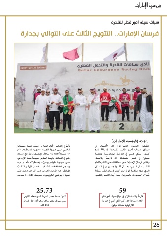 كلـم في السـاعة ،وتبعـه الفـارس سـيف أحمـد المزروعي ســباق ســيف أمــر قطــر للقــدرة لمســافة 120
