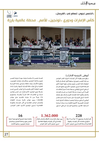 الحـدث تضمـن 16منافسـة دوليـة ،منهـا 6دوليـة الخمـس أبوظبي (فروسية الإمارات)