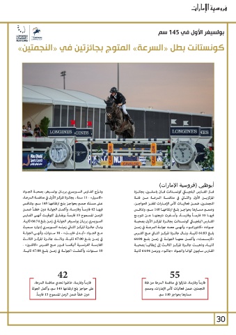 فيهــا 42فارســاً وفارســة ،وأكمــل الجولــة دون خطــأ ضمــن المركزيــن الأول والثــاني في منافســة السرعــة مــن فئــة