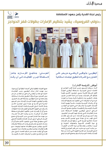 مـن جهتـه ،هنـأ هشـام الحوسـني ،مديـر الفروسـية في منتجـع الريــاضي الــدولي بأبوظبــي ،المؤهلــة لاســتضافة مثــل
