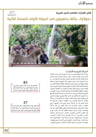 43 التـي حققـت مراكـز متقدمـة ونالت جوائـز 57خيل ًا تعـود الى 24مالكاً.