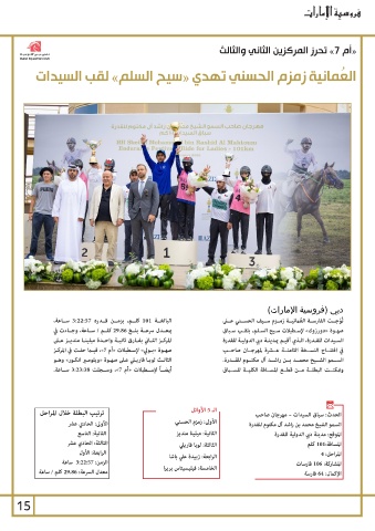 البالغــة 101كلــم ،بزمــن قــدره 3:22:57ســاعة، دبي (فروسية الإمارات)