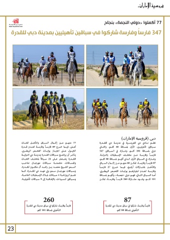 وســباقات مهرجــان ســمو ولي عهــد دبي للقــدرة ،كــا 87فارســاً وفارســة ،تمكــن 60منهــم مــن إكــال الســباق