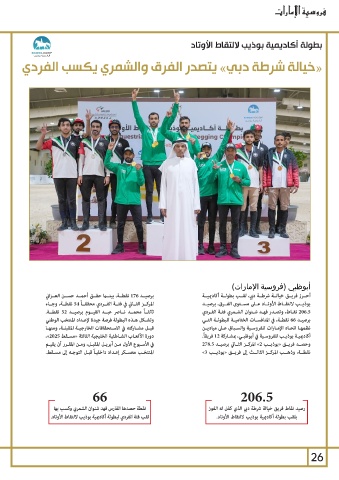 ثالثــاً محمــد نــاصر عبــد القيــوم برصيــد 52نقطــة. أحــرز فريــق خيالــة شرطــة دبي ،لقــب بطولــة أكاديميــة