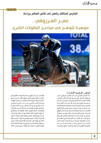 ويشــارك الفــارس الأولمبــي عمــر عبــد العزيــز المرزوقــي، إســطبلات الــراع ،عضــو فريــق الإمــارات لقفــز الحواجــز،