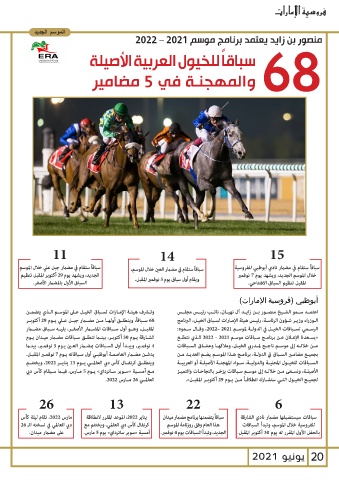 4نوفمـر ،ويبـدأ أول السـباقات بمضـار العـن يـوم 5نوفمـر ،بينـا الرســمي لســباقات الخيــل في الدولــة لموســم ،2022– 2021وقــال ســموه:
