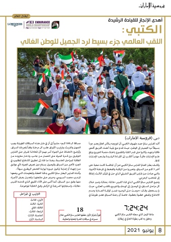 التوفيـق بـن قـدرة الجـواد عـى التحمـل مـن جانـب ،وادخـار مخزونـه مـن علـم الإمـارات عاليـاً ،مهديـاً اللقـب إلى القيـادة الرشـيدة وشـعب الإمـارات