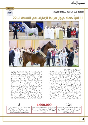 وانتــزع «أي أس حريــر» لمربــط الصقــران ،ذهبيــة الفحــول، الحــدث 124خيــ ًا ،مــن 8دول مــن مختلــف قــارات العــالم.