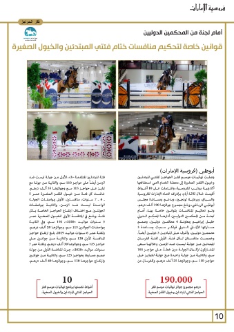 فئــة ،وبلــغ في المنافســة الأولى للخيــول الصغــرة عمــر أبوظبـي الريـاضي ،وبلـغ مجمـوع جوائزهـا 190ألـف درهم.