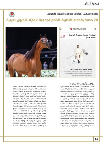ويضـم التطبيـق أيضـا قسـاً خاصـاً بالأنشـطة والفعاليـات لمـاك ومـربي الخيـول العربية داخـل دولة الإمـارات وخارجها،