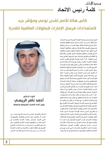 رئيس اتحاد الإمارات للفروسية والسباق التـي حازتهـا عـى الخريطـة العالميـة بالجهـد والعمـل والعطـاء