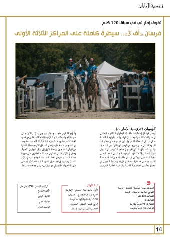 5:10:42سـاعة ،وبمعـدل سرعـة بلـغ 23.2كلم /سـاعة ،بعد واصـل فرسـان إسـطبلات «أف »3الإماراتيـة تألقهـم العالمـي