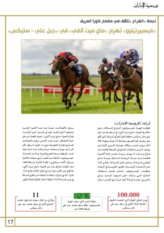 التحدي الكبير في سباق مضمار جبل علي «فيسبيرتيليو» بطلة سباق مضمار جبل علي الحائزة المراكز الأولى في سباق جبل علي