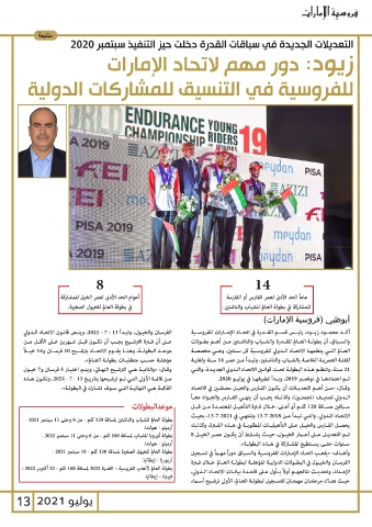 الفرسـان والخيـول ،وتبـدأ ،2021 - 7 - 13وينـص قانـون الاتحـاد الـدولي أبوظبي (فروسية الإمارات)