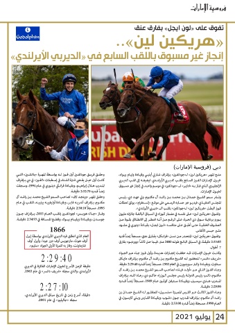 خيـول الإمـارات الفـوز السـابع بلقـب الديـربي الأيرلنـدي ،ليضيفـه إلى لقـب الديـربي