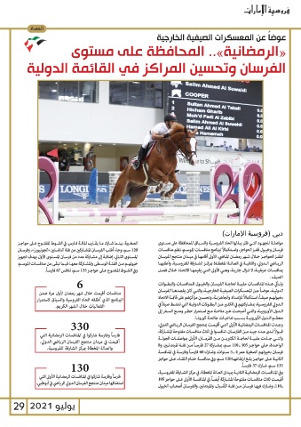 الفعاليات خلال الشهر الكريم. الـدولي للفروسـية ،بمشـاركتهم في الكثـر مـن البطـولات الدوليـة التي تنشـط صيفاً في