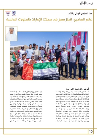 الخيــل ،لمشــاركة فرســان الإمــارات في البطــولات العالميــة، وفارســات دولــة الإمــارات مــن المهــارات التنافســية