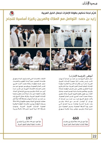 مشــاركة 197خيــ ًا تعــود لنحــو 150مالــكاً ومربيــاً. يعــد ركيــزة أساســية لمواصلــة مســرة النجــاح التــي