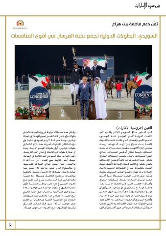 إلى صـدارة بطولـة كأس الاتحـاد في نـادي العين للفروسـية. فاطمــة بنــت هــزاع بــن زايــد آل نهيــان ،رئيســة