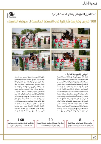 بالشــكر للقيــادة الرشــيدة عــى دعــم ورعايــة الــدولي للفروســية ،وجــرت المنافســات خــال 3أيــام.