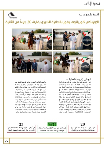 ثانيـة ،وأحـرز المركـز الثالـث الفـارس السـوري ليـث 145سـم ،وتنافـس فيهـا 20فارسـاً وفارسـة ،وصعـد 5