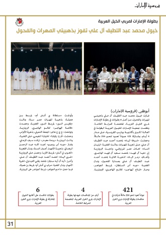 «فالحــة الهواجــر» لغانــم الهاجــري ،البرونزيــة. المهـرات والفحـول ،مـن أصـل 6بطـولات في بطولـة الإمـارات