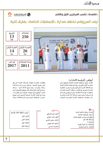 وقطعــت الفارســة البطلــة المســافة الكليــة للســباق أبوظبي (فروسية الإمارات)