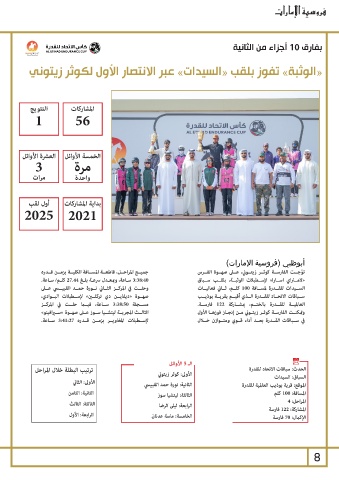 ترتيب البطلة خلال المراحل الـ 5الأوائل الحدث :سباقات الاتحاد للقدرة