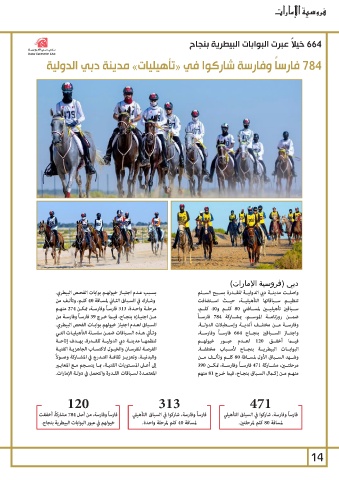 مرحلـة واحـدة 313 ،فارسـاً وفارسـة ،تمكـن 274منهـم واصلــت مدينــة دبي الدوليــة للقــدرة بســيح الســلم