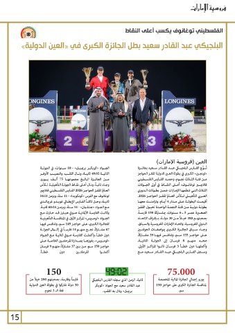 مــن الجائــزة البالــغ مجموعهــا 75ألــف يــورو. تُــ ِّوج الفــارس البلجيــي عبــد القــادر ســعيد بجائــزة