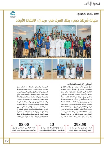 وأكــد راشــد المزروعــي ،رئيــس قســم التقــاط الأوتــاد وحقــق فريــق خيالــة دبي 298.50نقطــة ،وجــاء