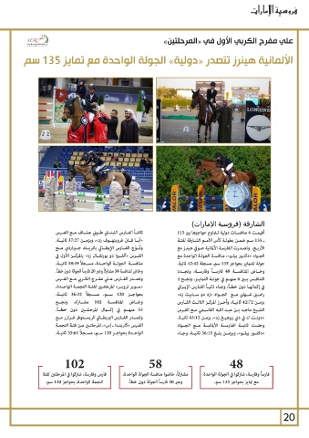 وخاض المنافسة 58مشاركاً وعبر 20فارساً الجولة دون خطأ. الجـواد «دكتـور بيلـو» ،منافسـة الجولـة الواحدة مع