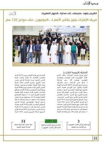 الواحدة للخيول الصغيرة. الثانية لكأس الأمم لـ «الجونيورز». هي الإمارات ،مصر والعراق.