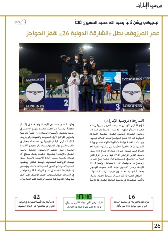 وفارســة عــر منافســتين أقيمتــا ،ونجــح 6في إكــال الشارقة (فروسية الإمارات)
