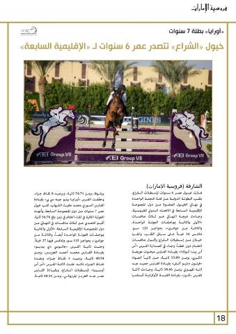 يرشـوفا ،بزمـن 54:74ثانيـة ،وبرصيـد 8نقـاط جـزاء. الشارقة (فروسية الإمارات)
